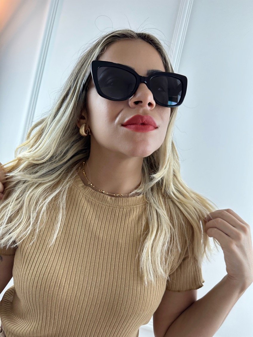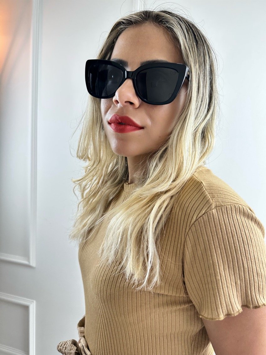 É UM ÓCULOS DE SOL FEMININO EM ACETATO MODELO CAT EYE (GATINHO) TODO EM ACETATO COM LENTES POLARIZADAS.