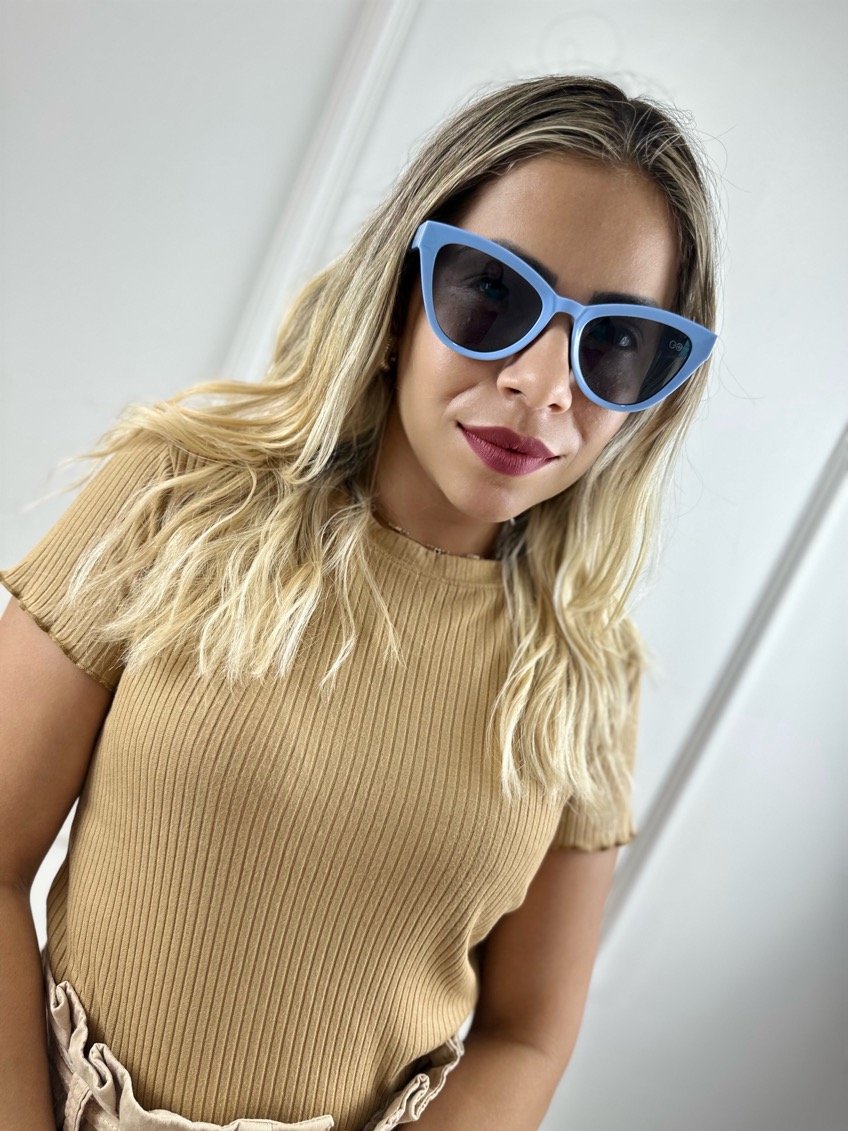 É UM ÓCULOS DE SOL FEMININO EM ACETATO MODELO CAT EYE (GATINHO)
