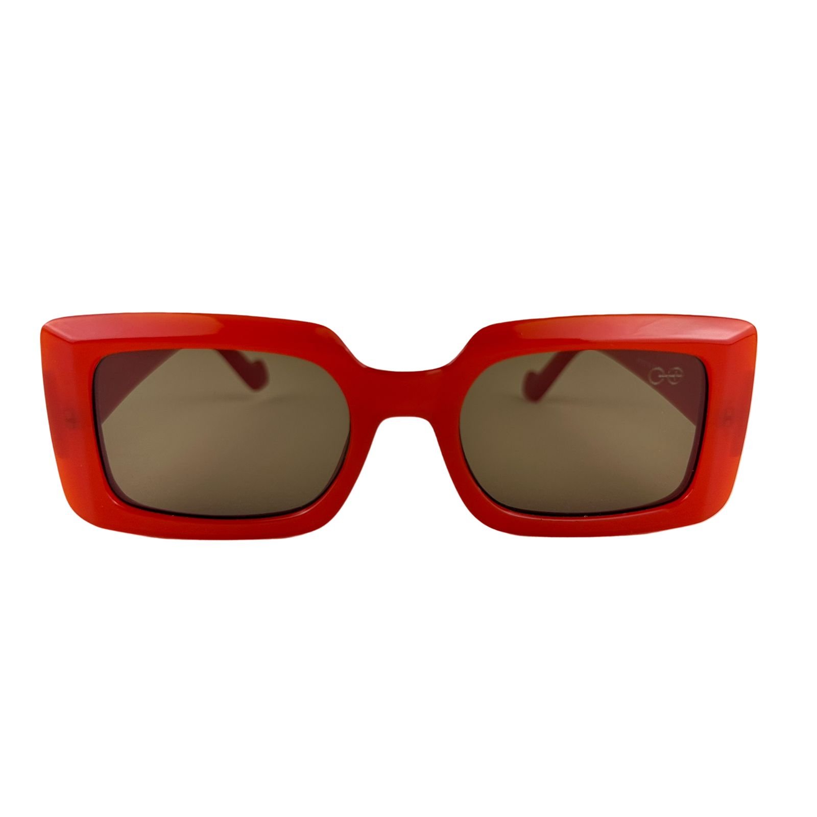 É UM ÓCULOS DE SOL FEMININO EM ACETATO MODELO RETRÔ RETANGULAR.