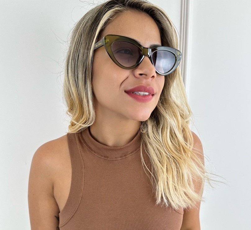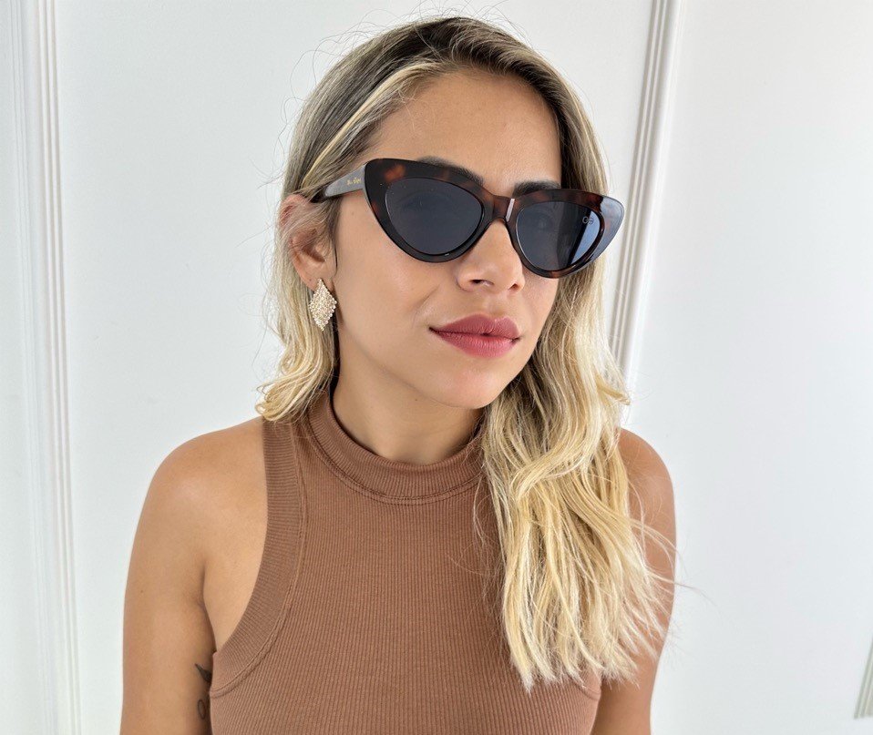 É UM ÓCULOS DE SOL FEMININO EM ACETATO MODELO RETRÔ CAT EYE (GATINHO).