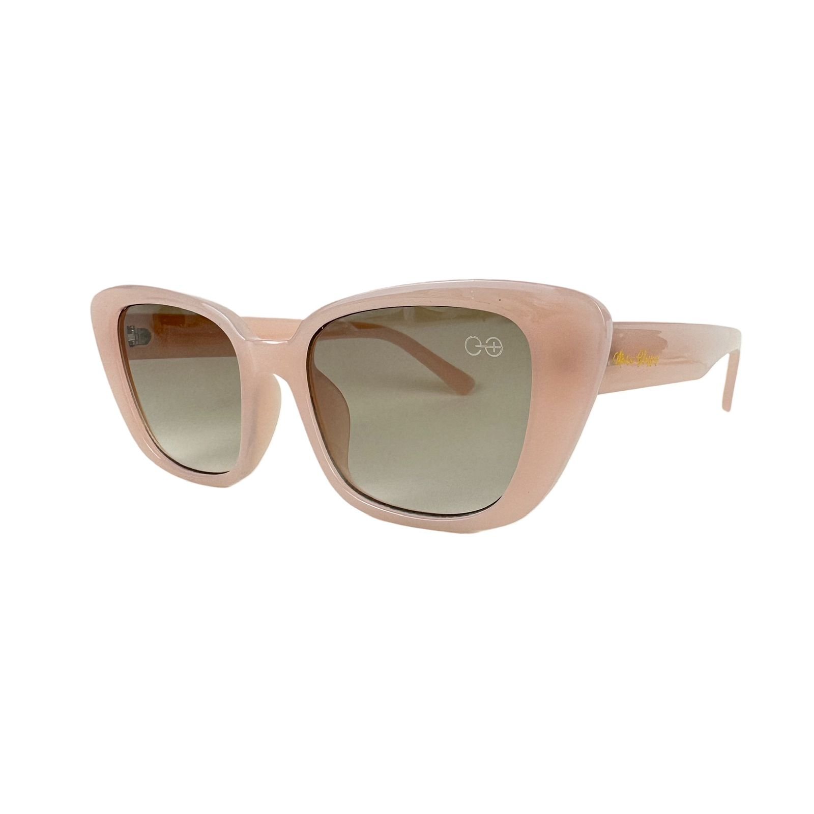 É UM ÓCULOS DE SOL FEMININO EM ACETATO MODELO RETRÔ.